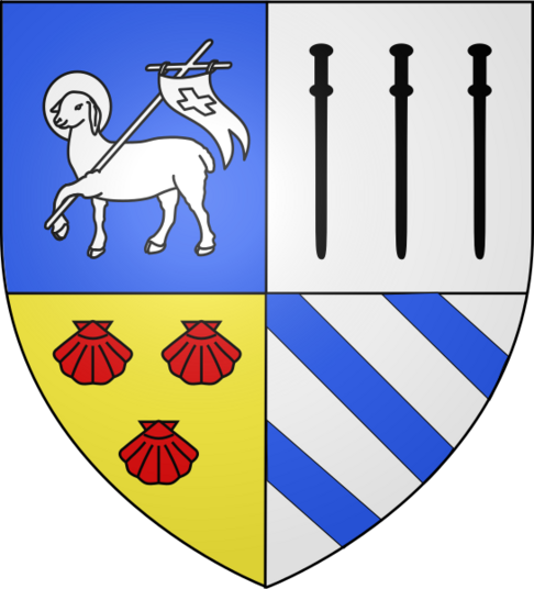 Le premier quart appelé 1 er d'Azur par sa couleur bleue à gauche nous décrit l'agneau Pascal D'Argent (couleur blanche).