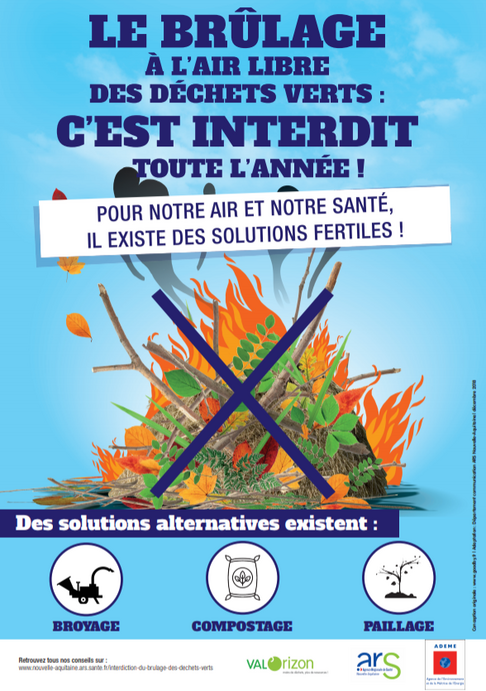 Nous souhaitons vous rappeler que le brûlage des déchets ménagers et des déchets verts à l’air libre est strictement interdit conformément à l’article 84 du Règlement Sanitaire Départemental et repris par l’article 4 de l’Arrêté Préfectoral N°64-2022-11-21-00029 :